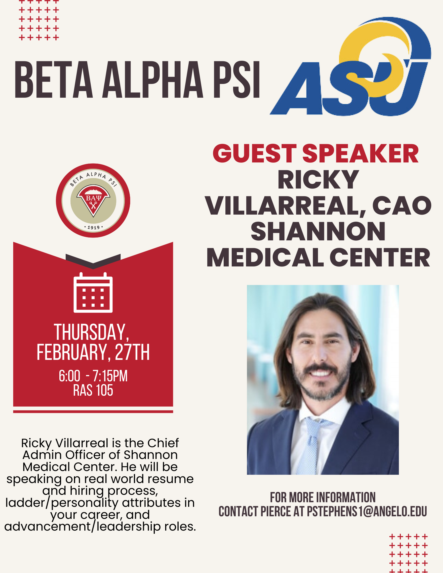 Ricky Villarreal, CAO or Shannon Medical Center will be visiting with us.