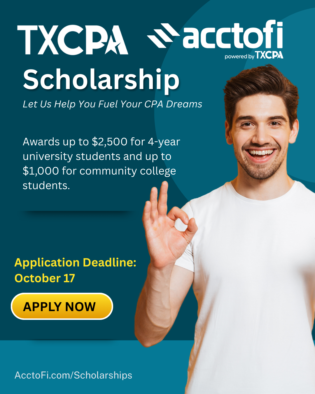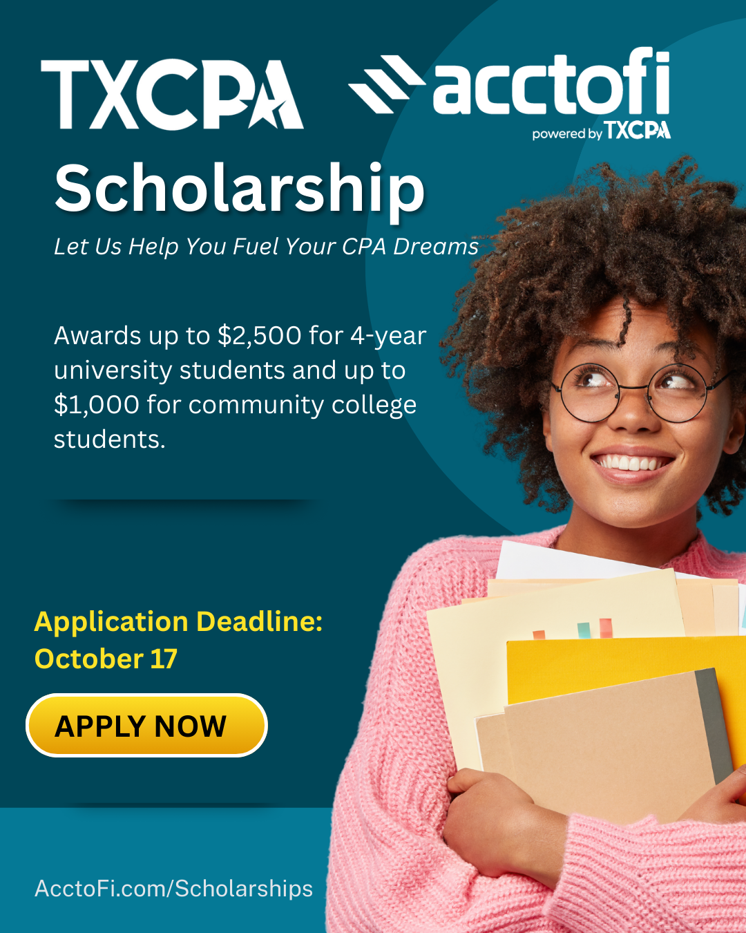 Subject: Help Us Share: TXCPA Scholarship Application Open until 10/17!