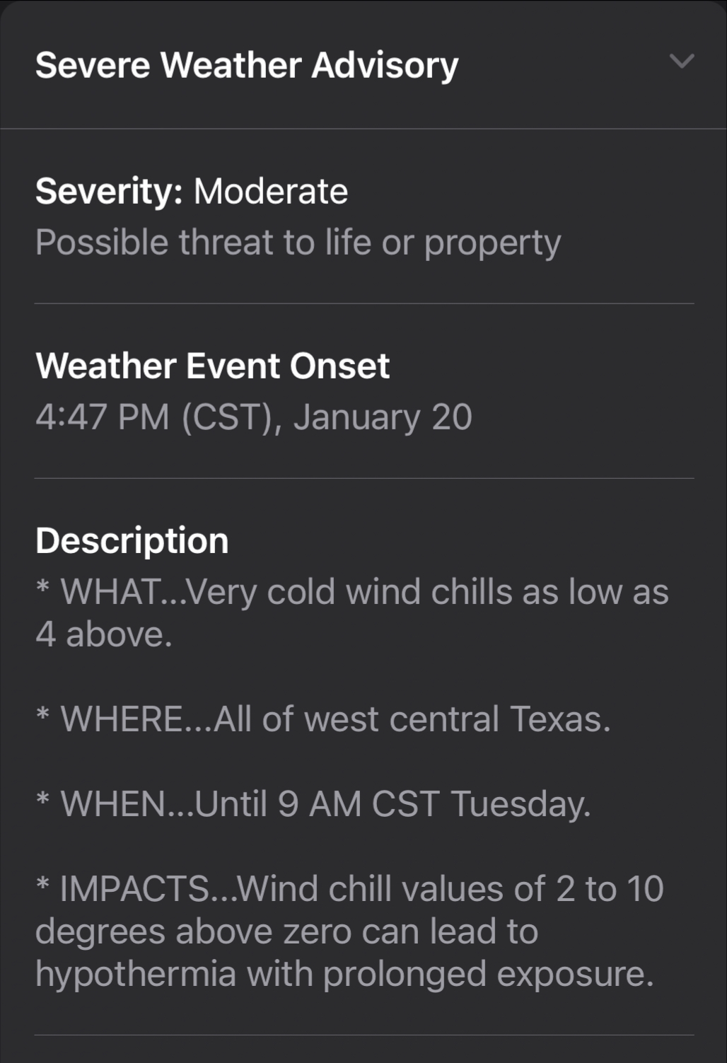 Good evening, please be careful tonight and tomorrow as you make it back to class. Wx is expected to be extremely frigid & dangerous. Let us know if we can help.